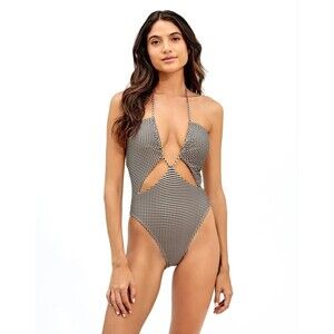 VIX Paula Hermanny womens Lupita One Piece Swimsuit size Large Black Check $248