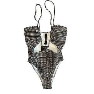 VIX Paula Hermanny womens Lupita One Piece Swimsuit size Small Black Check $248