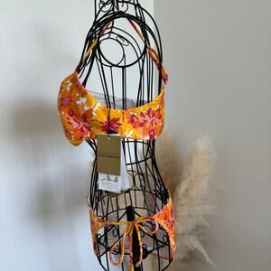 VIX Swimwear Lowana Floral One Shoulder Bikini Set NEW D Cup Small Bottom