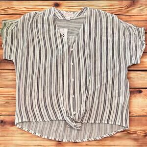 #VIXBE #StripedBlouse #ButtonDownTop #TieFrontTop #LightweightBlouse #CasualChic #SpringStyle #SummerStyle #NeutralStyle #SizeLarge #WomenWithStyle #TrendyTop #ClosetGoals
