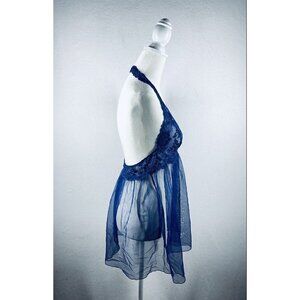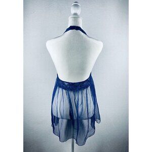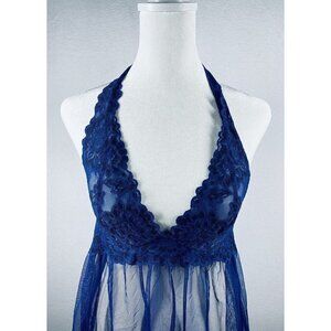 VIctorias Secret Gown Womens Medium Blue Lace Mesh Halter Babydoll Sheer