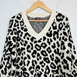 VInce Camuto V NEck Animal Knit Sweater Long Sleeve Soft - M