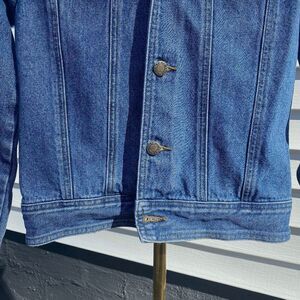 - Cute trendy vintage 2000s medium wash denim jean jacket with silver studs in star shape on back by the H&M Dubster line