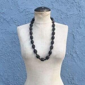VIntage 1950s Black Beaded Statement Necklace Goth whimsygoth Antique