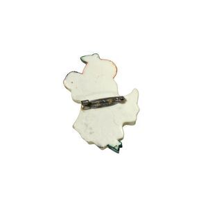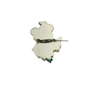 Very small chip of paint on edge at bottom. Some small scratches on back. Metal Deep C Clasp has a little bit of rust, see pics. No markings found. One of the coolest Halloween pins I have ever come across. Measures approximately 2.5 tall and 2 wide.