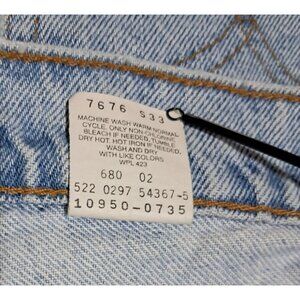 These Levi's 950 jeans offer a relaxed fit with a tapered leg, providing comfort and style. Constructed from soft and durable denim, they are ideal for casual outings. In the last photo, there are a couple of very light green spots on the leg. I didn't even see them while photographing or measuring. Distressing at the edges.