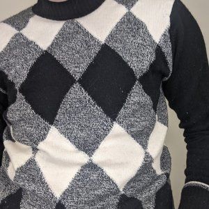 VIntage Black and White Argyle Turtleneck Sweater