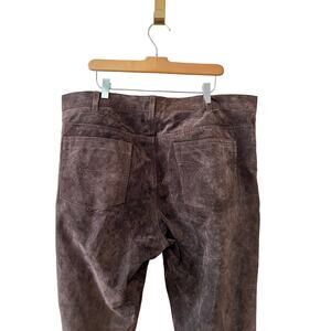VIntage Chaps Denim Suede Straight Leg Pants in Chocolate Brown, size 40/30, approximately an XXL. Good preowned condition, genuine leather, nylon taffeta lining (half leg). Features classic 5 pocket styling, zipper and button closure, belt loops and western stitching on back pockets.