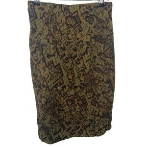 VIntage Cosa-Nostra Olive green geometric design Pencil Skirt Size 4 Tapestry
