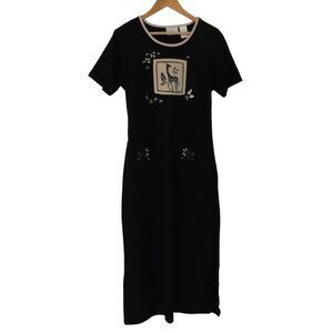 VIntage Erika Long Dress Modest SHort SLeeve Pockets Tie in Back SIze Large