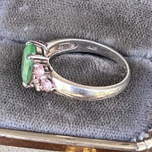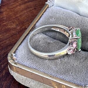 Vintage sterling silver sea foam green and pink cubic zirconia ring size 8 1/2. Marked 925, China, and HAN