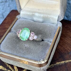 VIntage Green and Pink Cubic Zirconia Cocktail Ring Size 81/2 Jewelry pastel