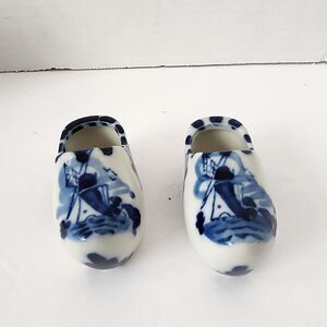 VIntage Hand Painted Porcelain Miniature Dutch Clogs Shoes Blue Delft Windmills