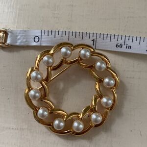 VIntage signed Napier faux pearl and gold tone Brooch. 1960s wreath style approx 1.5"