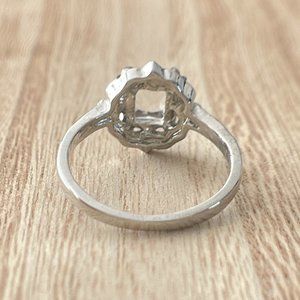 VIntage Radiant Floral White Sapphire Halo Ring. 925 Sterling Silver.