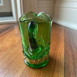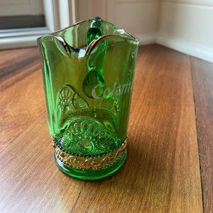 VIntage Small Green Glass Souvenir of Coleman Michigan with Gold Trim