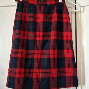 Vintage Pendleton 100% wool plaid skirt - Holiday ready. Adorable pleated accent in the front of the red and navy plaid.