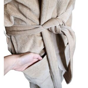 VIntage 70s Velour Bathrobe Pockets Mens One Size Beige