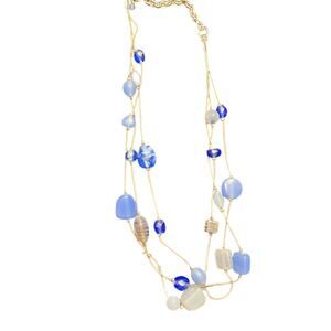 VJ Victoria Jousan Blue Beaded Necklace Long Silvertone Multistrand Glass Beads