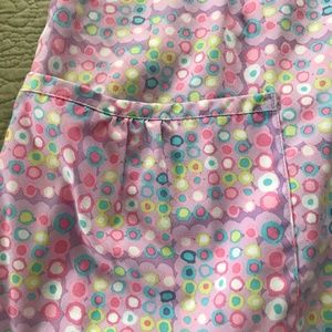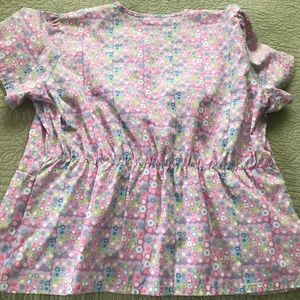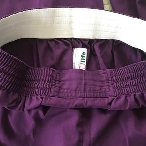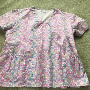 VLIFE pink tones scrub top and dk purple pants, XL, gently worn, two pockets on top and in pants, unique pucker at pockets and neckline (WT1257)