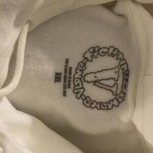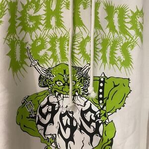 White hoodie w/ neon green demon graphic + big VLONE โVโ on back. Streetwear grail. ๐๐ฅ
