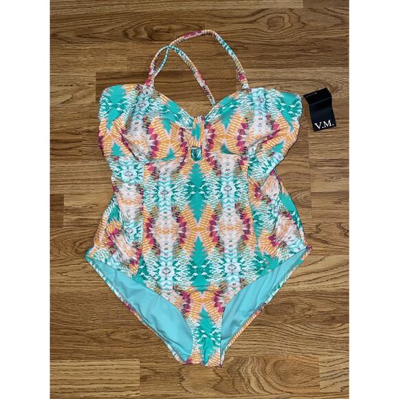 VM One Piece Swimwear Bathing Suit Women’s Plus Size 1x Multicolored NWT