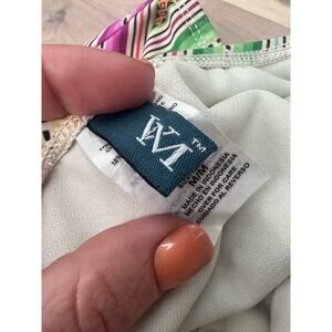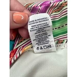 Make a splash with the VM Striped Colorful Bikini Bottom! This vibrant and stylish swimsuit piece features a playful striped pattern that adds a fun pop of color to your beachwear. Designed for comfort and a flattering fit, it comes in size medium, perfect for mixing and matching with your favorite swim tops. Dive into summer with this eye-catching and chic bikini bottom.
