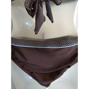 VM. Super cute bikini. Brown with white polka dots. 3 pc bikini with swim skirt. EUC