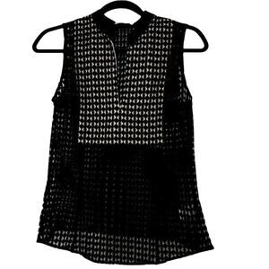 VMT Los Angeles crochet top, Deep V, Front Bodice Panel, Black/Cream, High-Low, est size 2. P2P - 17.5”, Length - 22-24” (hi-lo) very gently preowned.