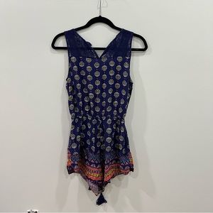 This romper has an intricate pattern and creates a beautiful image with all of the colors as well. It has a tassel tie around the waist, but i am not sure if it is just for decoration or if it actually makes the waist tighter.