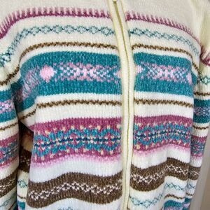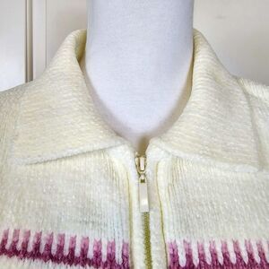 Vintage 90's Alfred Dunner Fair Isle Full Zip Chenille Collared Sweater Cardigan.