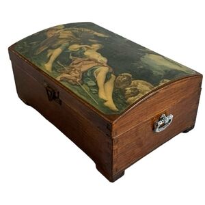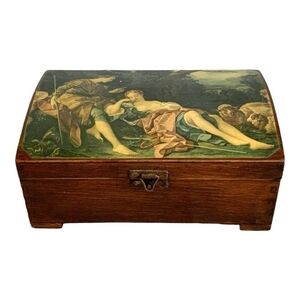 VNT Wood Box Victorian Florentine Pictorial Italian Jewelry Trinket Box Keepsake