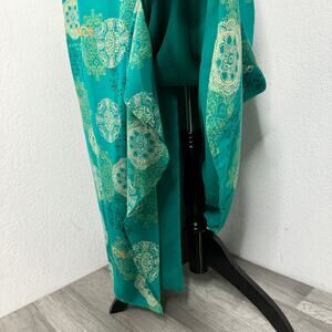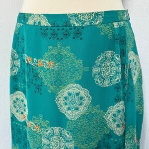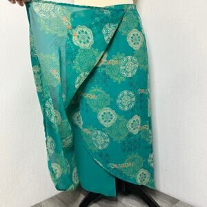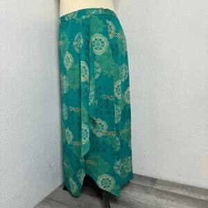 Vintage Y2K Fairycore Midi Maxi Skirt Teal Bright Faux Warp Vacation Summer Size 18, a few small snags and small pinhole in waist