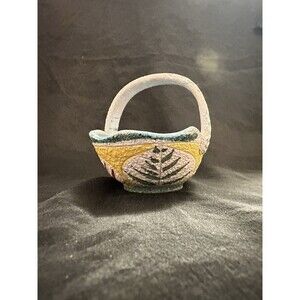 Vintage 1950s Italian Pottery Basket Textured Glaze Multicolor Decorative Collectible 3"x3"