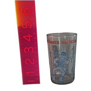 Vintage 1971 Welch's Jelly Jar Archie Comics 'Reggie Makes The Scene' promotional glass featuring Veronica. Individual glass measures 4 inches tall.