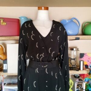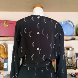 VNTG 80s Albert Nipon Celestial Moon Blouson Dress w/Belt & Dickie Size 6