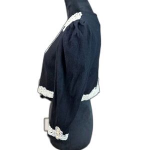 VNTG 80's Marie St. Claire Blk Wool Cropped Long Sleeve Jacket with Lace Size 6