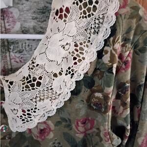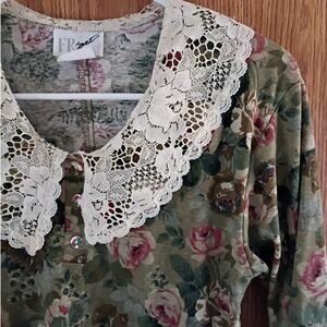 romantic grunge top, cottagecore vintage blouse, 90s floral lace collar, y2k romantic shirt, soft goth vintage top, made in usa vintage, peter pan collar blouse, vintage floral long sleeve