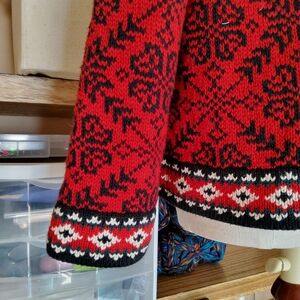 VNTG 90s LL Bean Intarsia Winter HEAVY Cardigan 100% Cotton Size M Brrrr