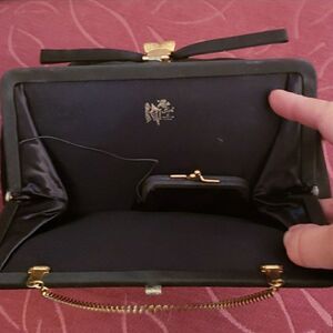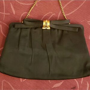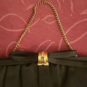 Small chainlink strap which can be tucked inside for clutch purse option or pull out for shoulder strap option