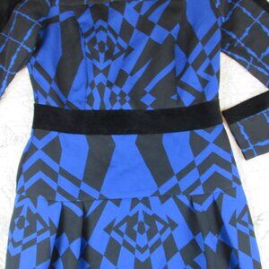 VNTG BARELLI long sleeve wool blnd geometric midi dress womens size US 4 EUR 36
