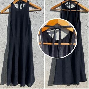 VNTG Black Halter Midi Dress Sheer Open Back w/Sparkle XS Whimsygoth Distressed