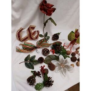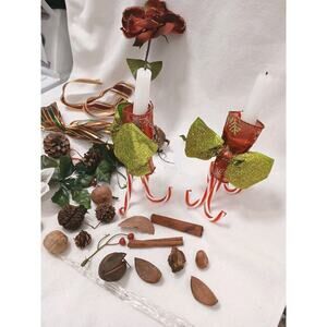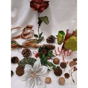 VNTG Christmas Decor Accessories Rose Pine cones Ribbons Candycane Candles Nuts