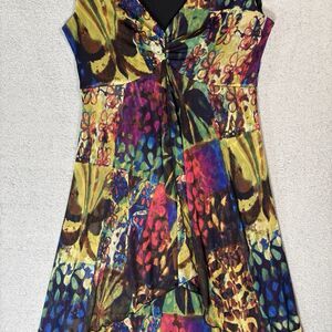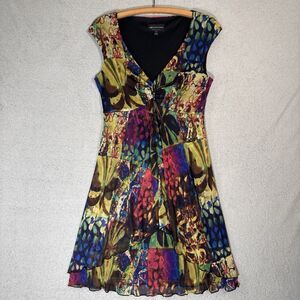 Black, Blue, Purple, Magenta, Yellow, Gold, Green, Trending, Vibrant, Multi Color, Patchwork, Patterned, Abstract, Floral, Butterfly, Babydoll, Mini, Short, Above Knee, Cap Sleeve, V Neck, Surplice, Twisted Front, Empire Waist, Lined, Chiffon, Mesh, Cocktail, Party, Event, Wedding Guest, Summer, Spring, Vacation, Resort, Going Out, Flirty, Feminine, Connected Apparel, Women, Ladies, Small, Flowy, Ruffle Hem