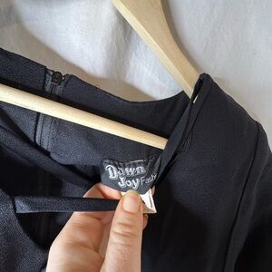 VNTG CrissCross Neckline MIDI Black Shoulder Pad Dress Size Small