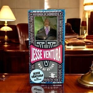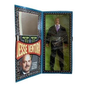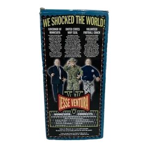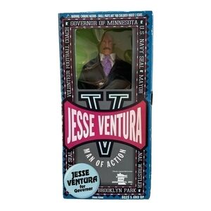 Own a piece of history with this VNTG Jesse Ventura Action Figure! This limited edition 12” statue captures the essence of the iconic Governor of Minnesota, #USNavySeal, and #FootballCoach. Crafted meticulously, this #ActionFigure is fully articulated, dressed in a sharp black suit, and is new in the box (minor box wear noted). Whether you're a collector or a fan of #JesseVentura, this #Figurine is a must-have. It's perfect for display or gifting to a #JesseVentura enthusiast. Don't miss the chance to add this unique #JesseVenturaStatue to your collection.