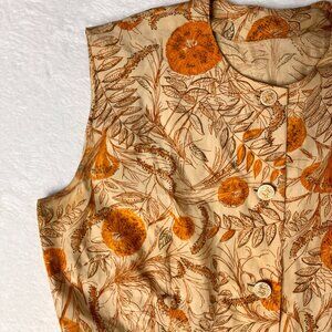 VNTG Handmade Orange Floral 50s Button Full Skirt Handmade No Size HOLES