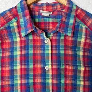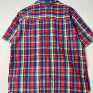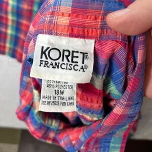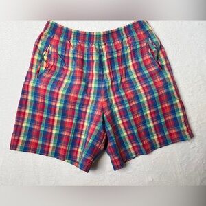 VNTG Koret Multi Rainbow Plaid Seersucker Button Up Shorts 90s Oversize Sz 18W
