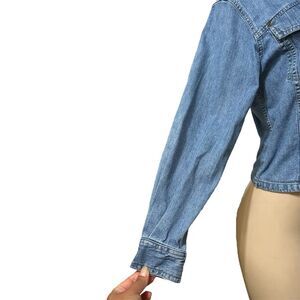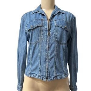 VNTG LIZ CLAIBORNE Y2K FITTED LAYERING CROPPED ZIP UP LONG SLEEVE DENIM JACKET SMALL