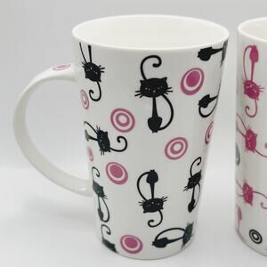 VNTG Maxwell Williams PussyCat PussyCat White Black & Pink Coffee Fine Mug Set